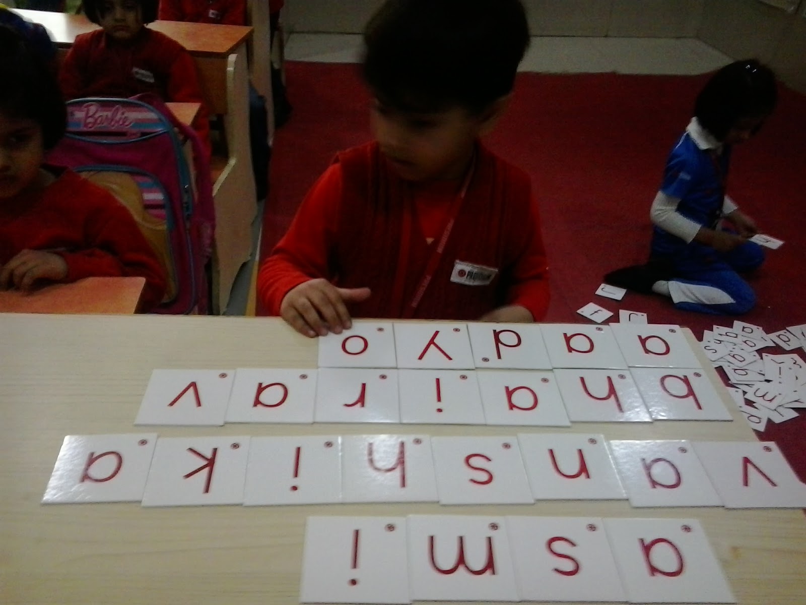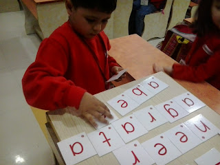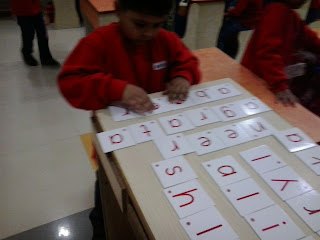 Children of Nursery class enjoying Letter Box activity and taking a step forward towards reading. After having an exposure to three letters words now children are able to read and write their own names as well as their friend's names. Great work Kiddos!!