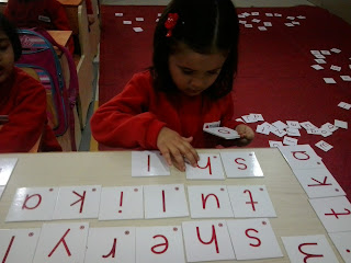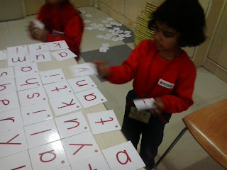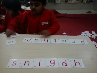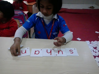 Children of Nursery class enjoying Letter Box activity and taking a step forward towards reading. After having an exposure to three letters words now children are able to read and write their own names as well as their friend's names. Great work Kiddos!!